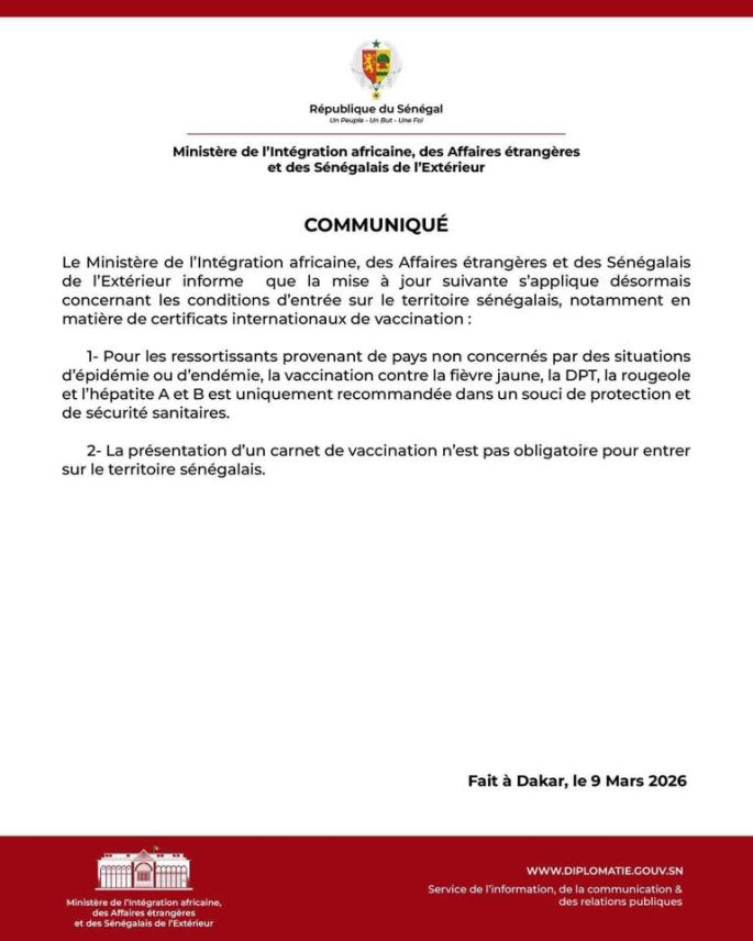 INFORMATION VACCINATION FIEVRE JAUNE