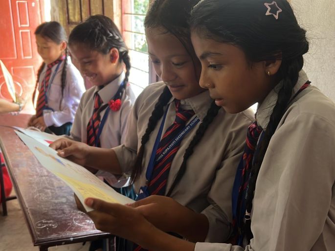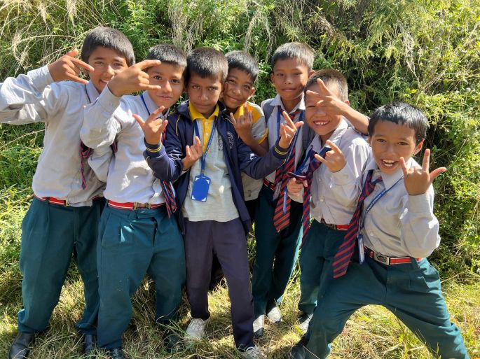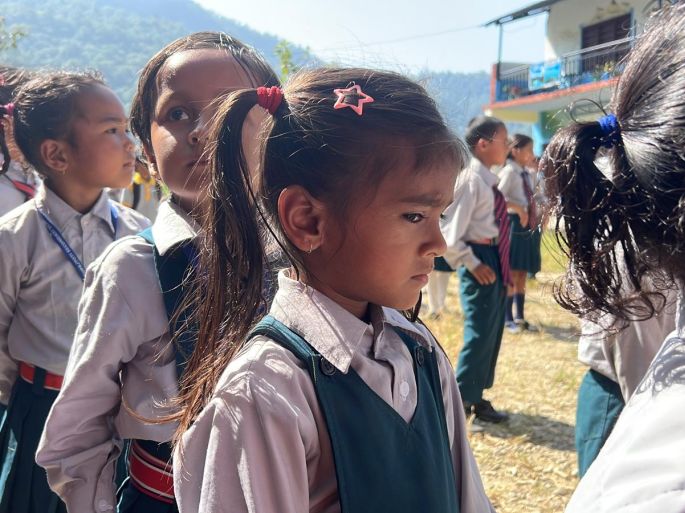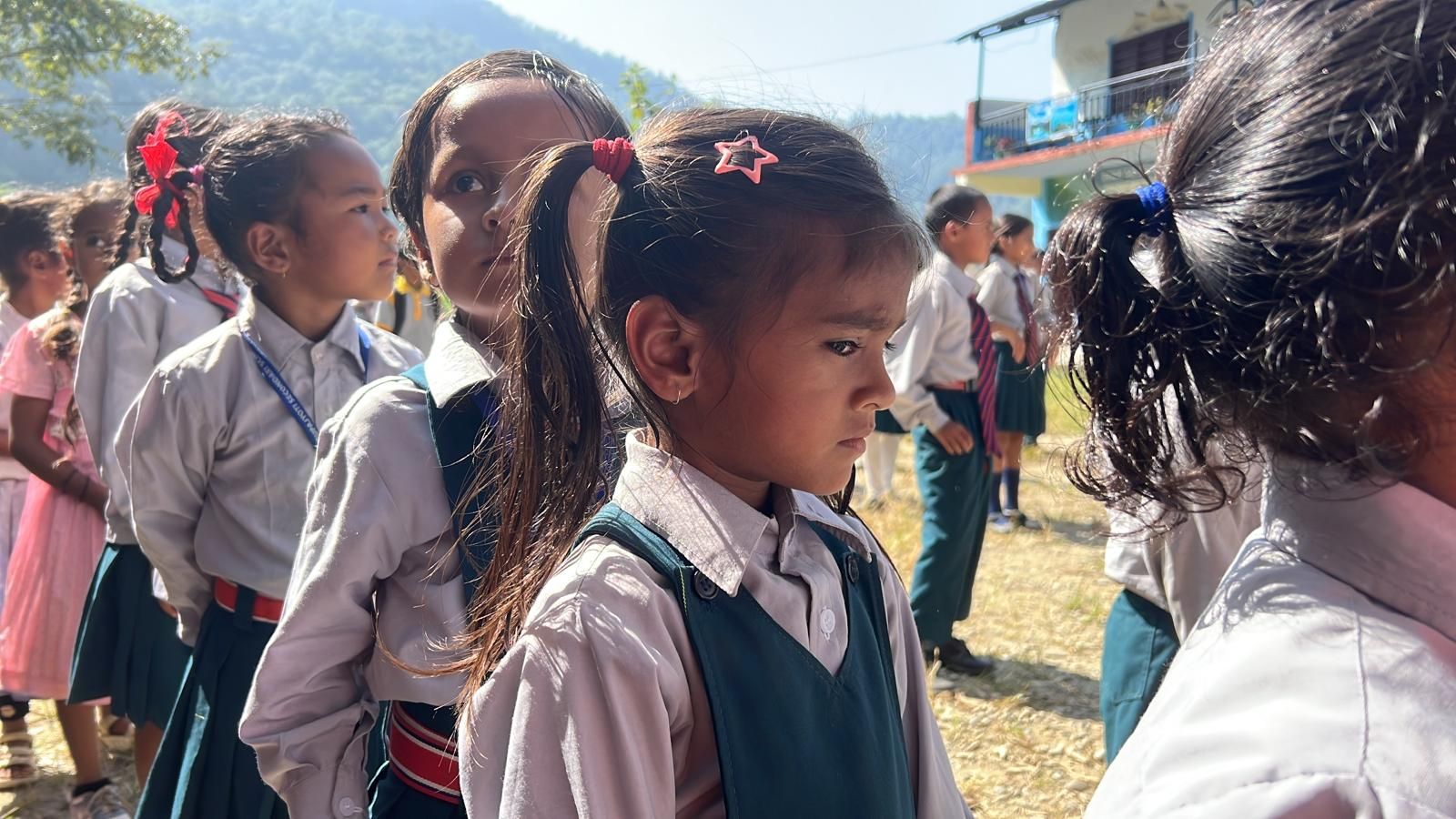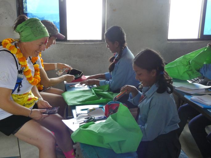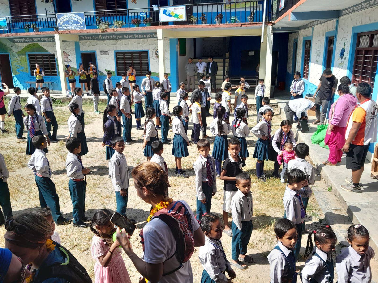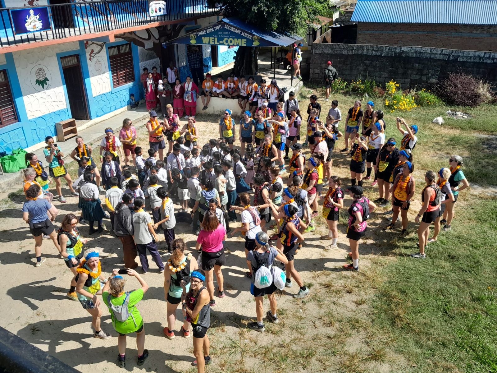 Départ de Bandipur en direction de Pokhara. La distribution des dotations est programmée avant la course. Les bus déposent donc les concurrentes à deux pas de la petite école de Shree Lila, avec sa vue imprenable.