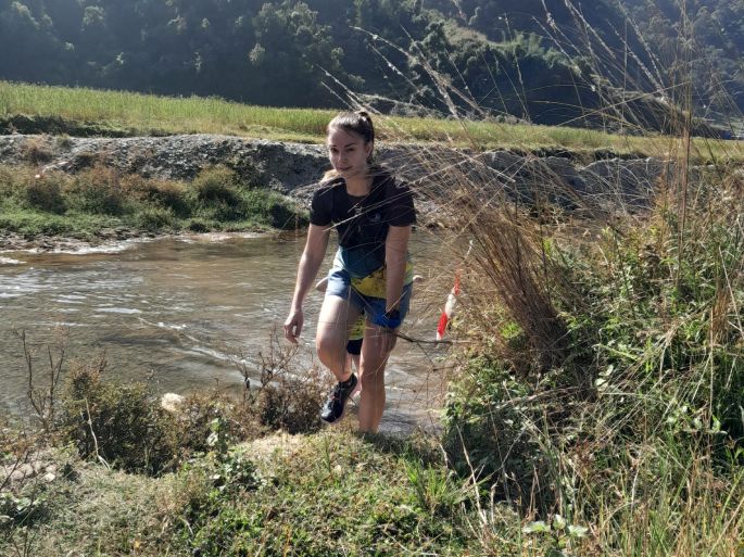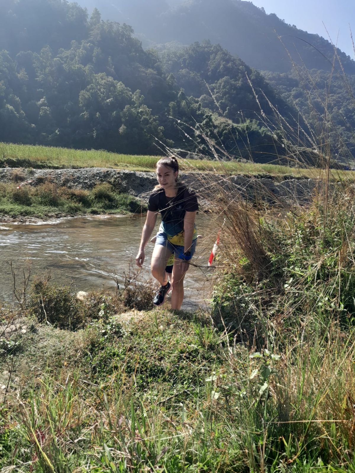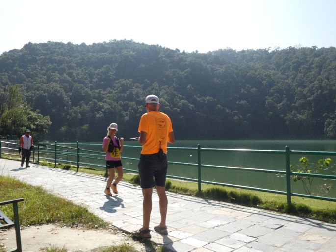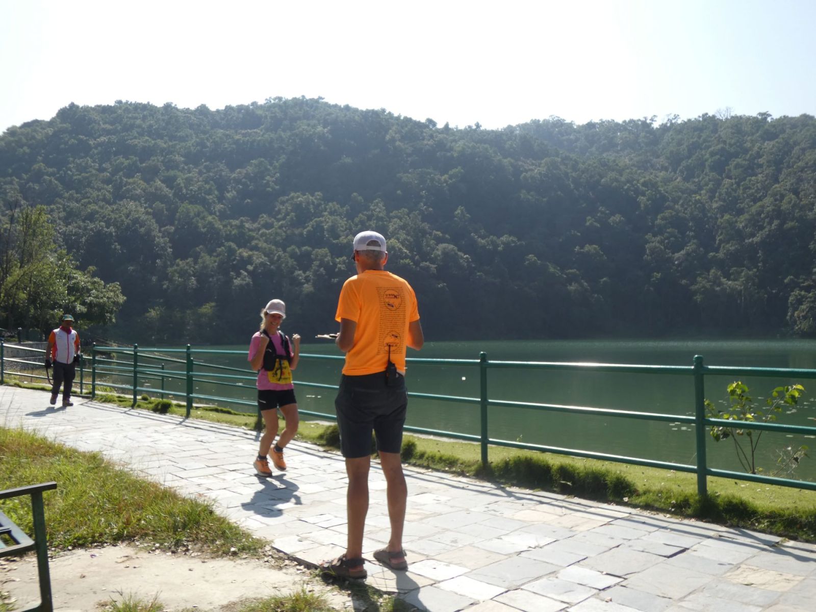Il est temps de rejoindre la ligne de départ de cette étape qui entraîne marcheuses et coureuses vers Pokhara. Un peu de dénivelé positif avant de descendre vers le lac par un sentier ombragé. De la descente et de l'ombre, deux atouts très appréciés après 3 étapes assez éprouvantes.