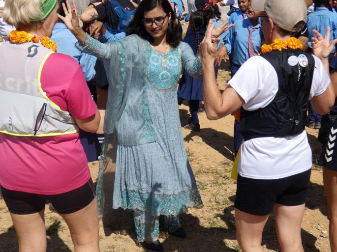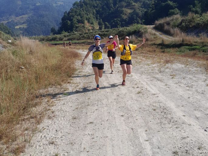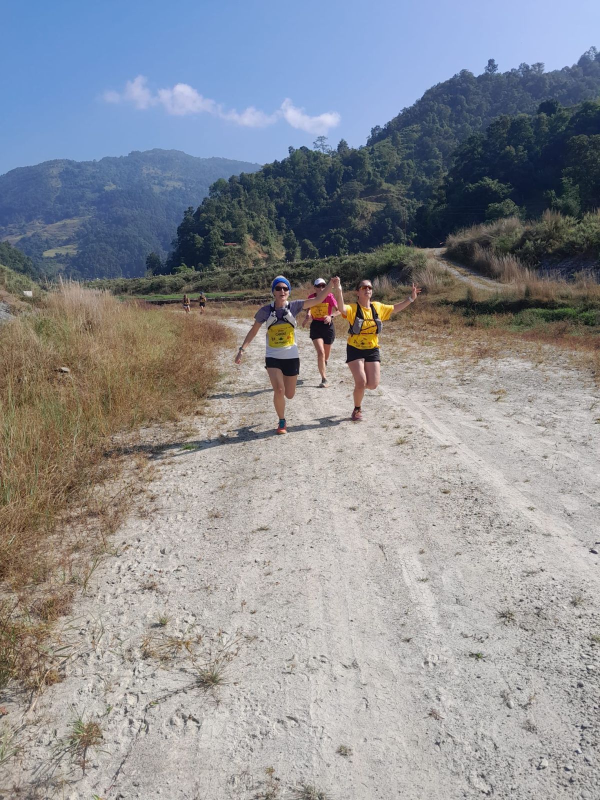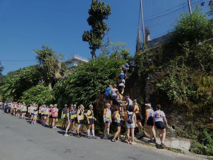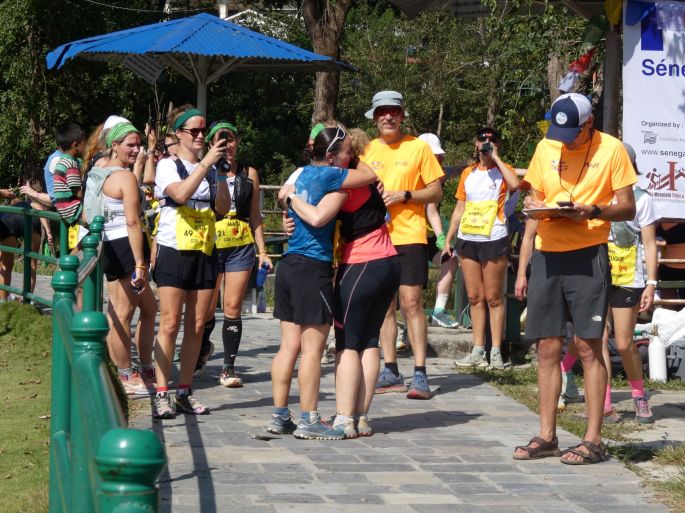 Les membres népalais d'encadrement montent ces escaliers de manière décontractée. Kansha Gurung et son équipe ont l'habitude de travailler avec des groupes de touristes à travers tout le Népal. C'est un jeu d'enfants pour eux de monter ces escaliers avec une aisance respiratoire déconcertante. Depuis le début du séjour, ils jalonnent les étapes et sécurisent les parcours. Ils assurent les ravitaillements situés à mi-parcours et sont aux petits soins avec les participantes. Ils sont heureux et fiers d'encadrer cette course qui devient au fil des années une épreuve connue au Népal.