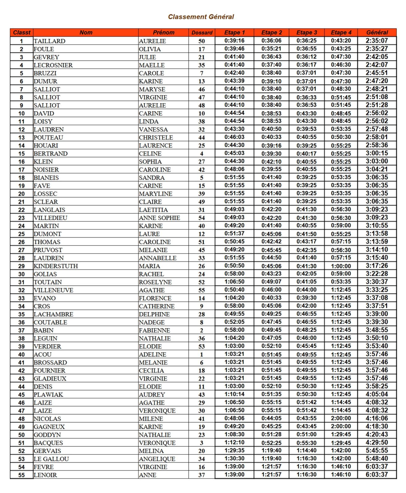 Sabrina LEON-HUGUET reste en tête. Laureline ROUX prend la deuxième place et Sophie OUTREQUIN arrive troisième.