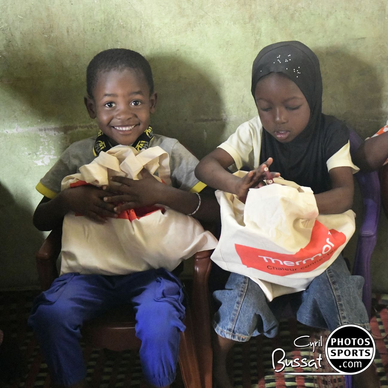 Malgré tout, la difficulté éprouvée s'efface dès l'entrée dans la cour de l'école de Samba Diallo, au son de la musique, des chants et des danses. C'est la première rencontre, la première distribution des dotations préparées la veille. Ca y est ! C'est concret !