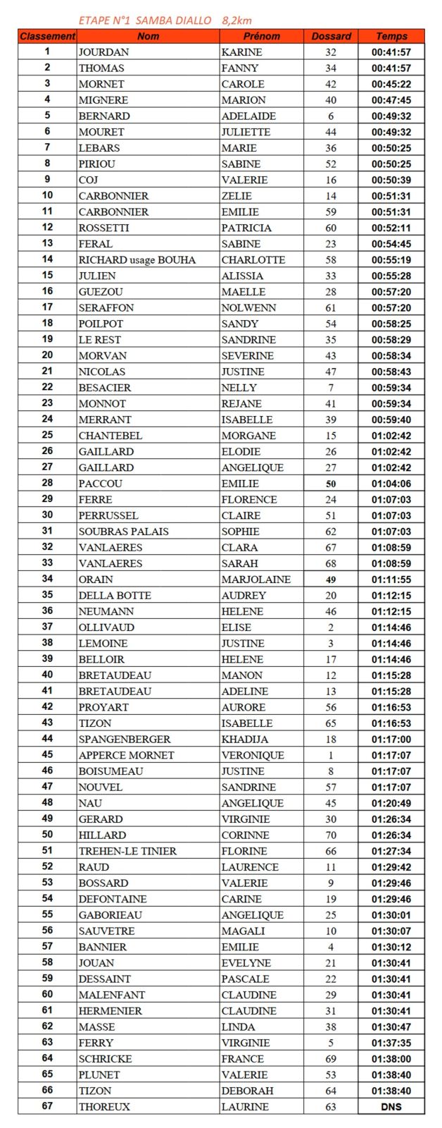 Classement étape