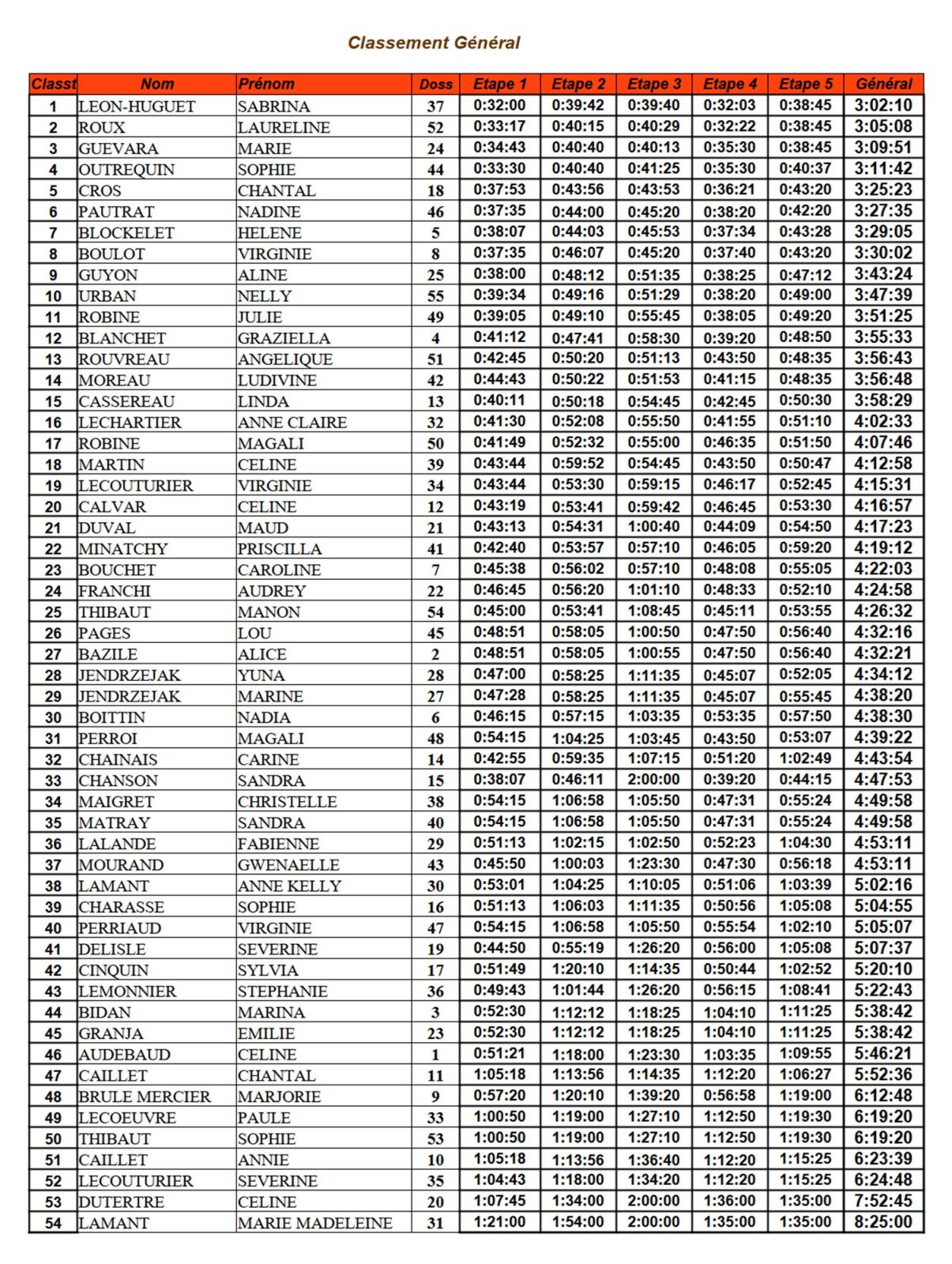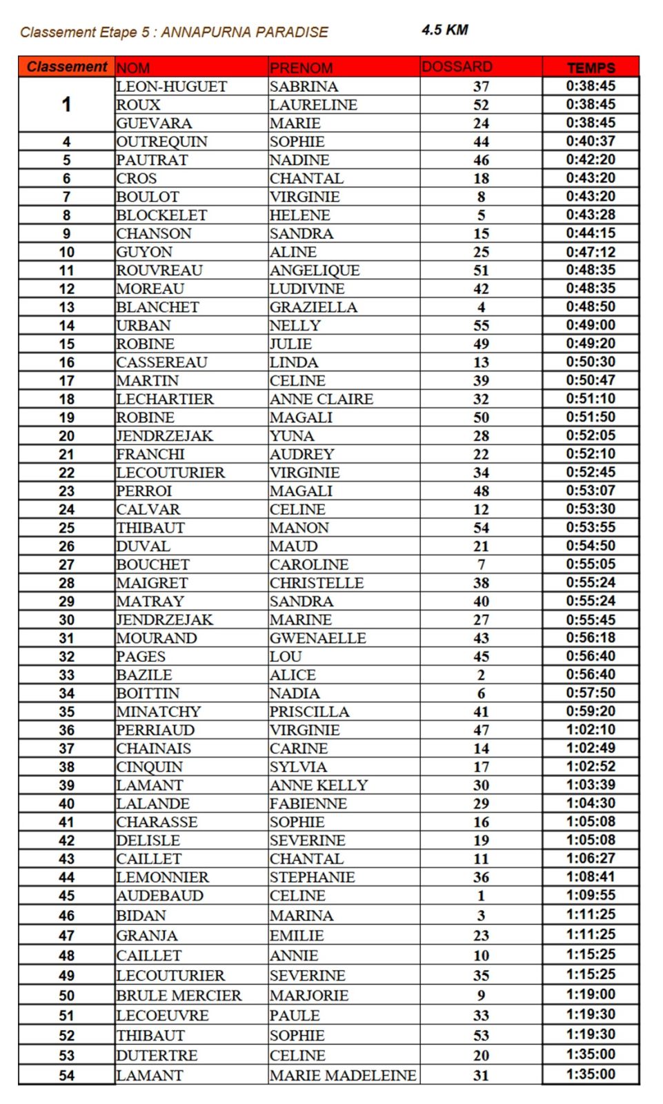 Classement étape 5 et classement général après 5 étapes - Etape Annapurna Paradice