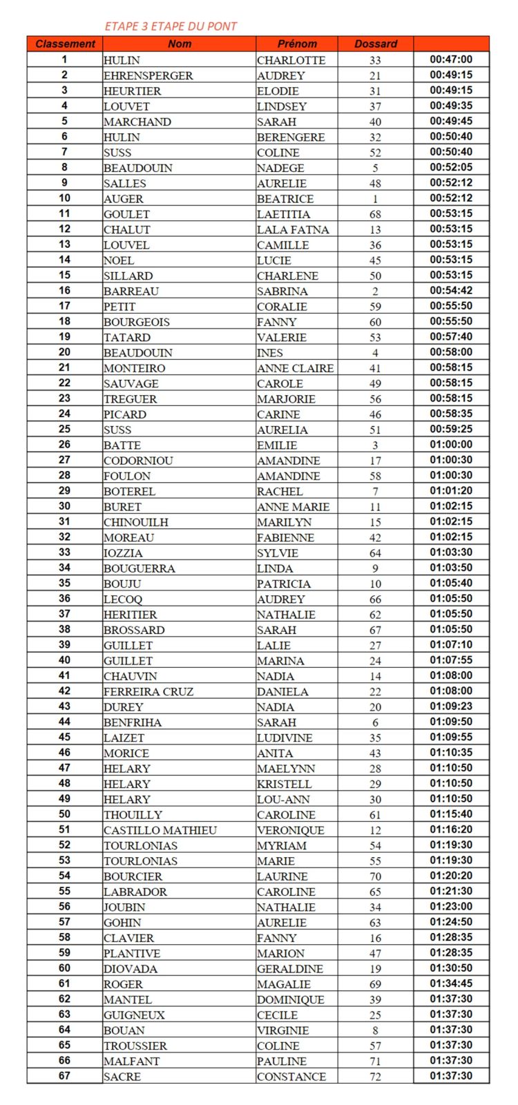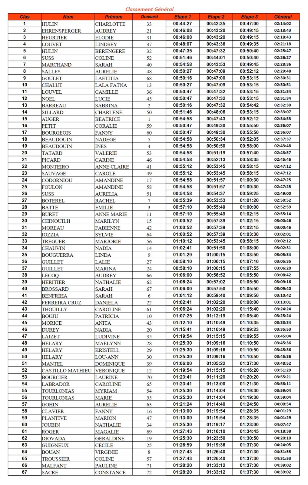 Classement du jour et général après 3 étapes