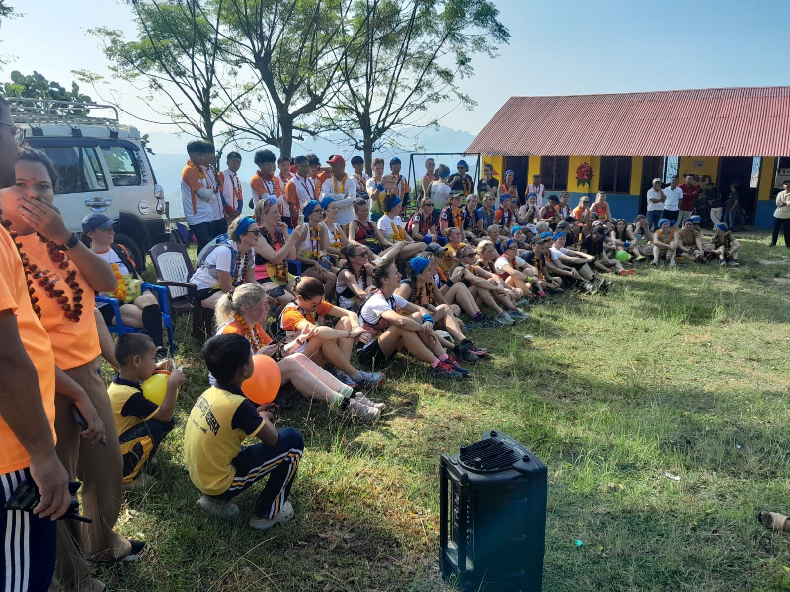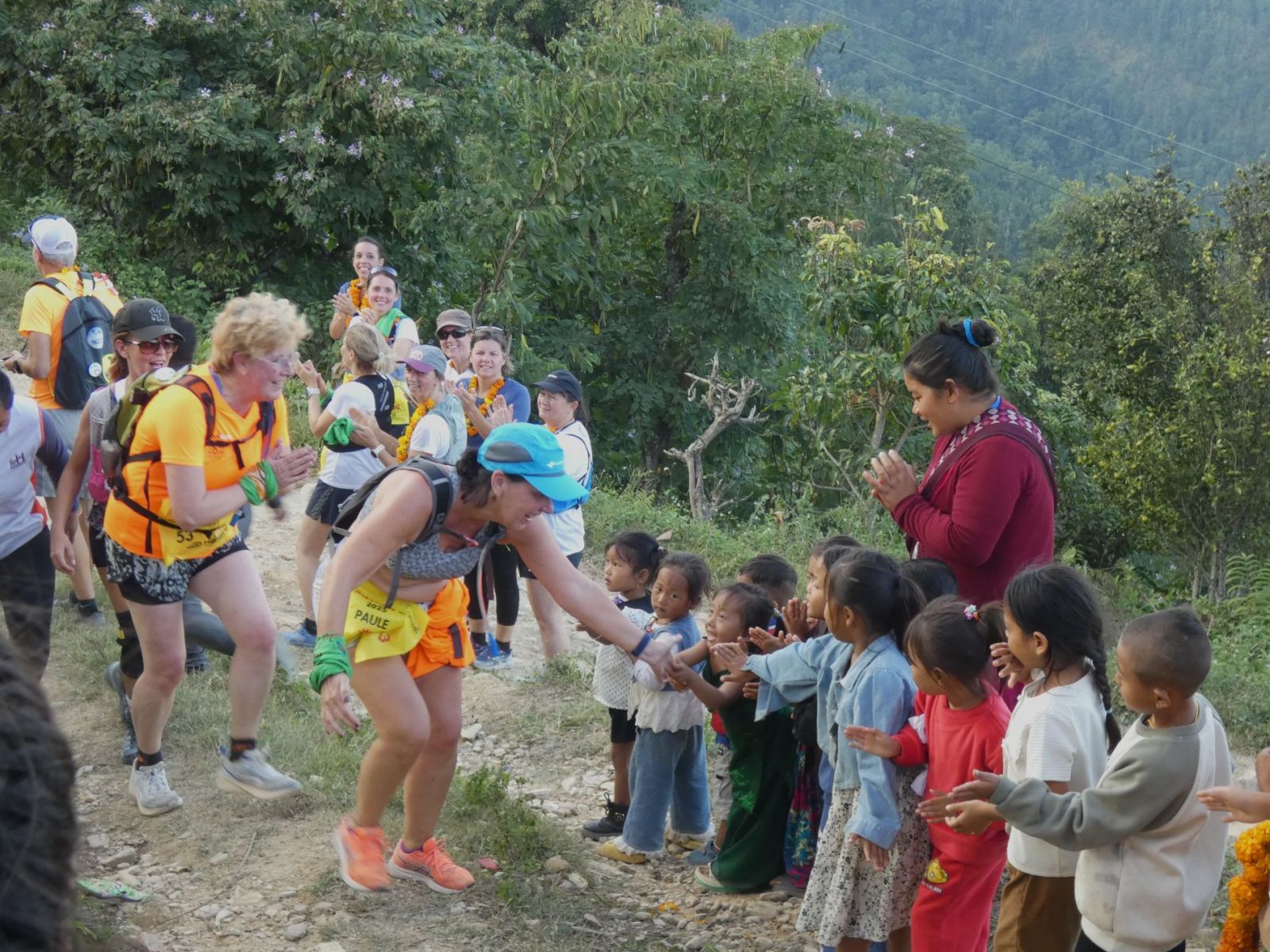 Le départ a été donné devant le petit hôtel de Bandipur qui nous a accueilli pendant ces deux derniers jours. Le début du parcours est une montée très difficile à flanc de colline sur plus d'un kilomètre. C'est la petite école de Ramkot qui a accueilli les participantes. Un accueil très sympathique et une distribution de matériel attendue de longue date. C'est la troisième fois que la Sénégazelle au Népal dote cet établissement scolaire.